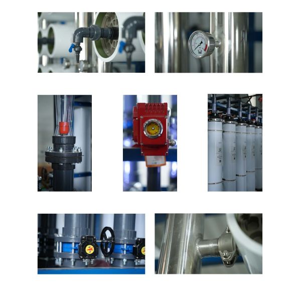 The entire system employs a two-stage reverse osmosis process, including a raw water pretreatment unit(Ultrafiltration System), a first-stage reverse osmosis system, a second-stage reverse osmosis system, a pure water storage tank, and a fully automated control system.